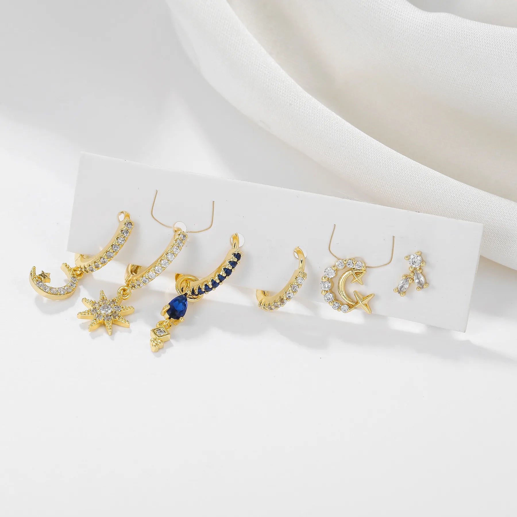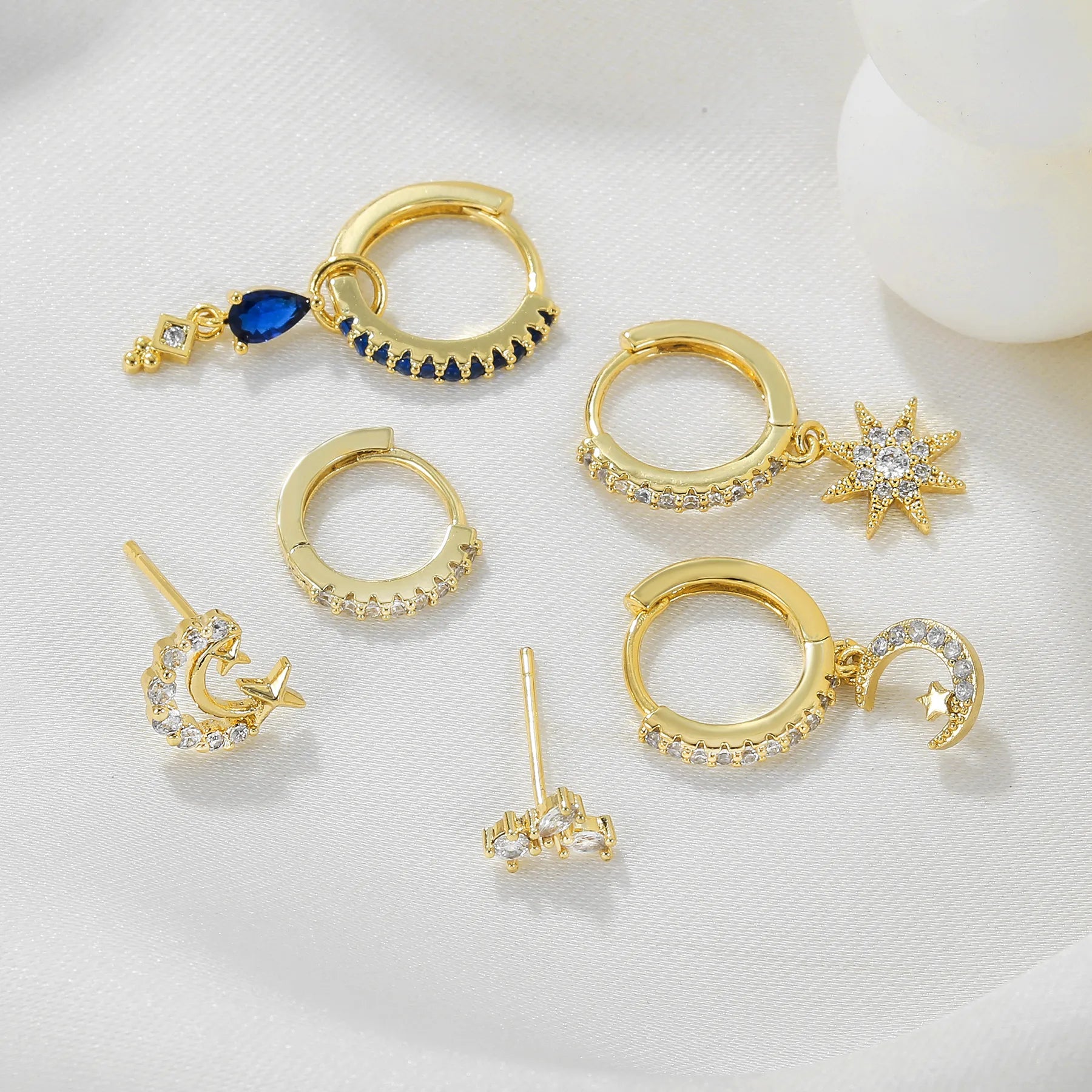 Elaborado en cobre enchapado en oro de alta calidad, este set combina elegancia y durabilidad. Las agujas de plata 925 garantizan comodidad y un acabado refinado que complementa cualquier look. Una joya que trasciende lo común, perfecta para quien aprecia la belleza celestial en sus accesorios cotidianos.